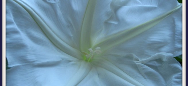 I have a moonflower vine. It grows on a trellis just outside my sunroom. Most every night I peek outside to see if it’s blooming. The flowers are as big as my hand, smell faintly sweet, and have heart-shaped leaves. It is by far one of the most beautiful flowers I have ever seen. I’m … Continue reading Of Moonflowers, Light, and Love
